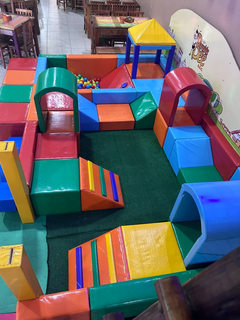 Fica ao lado das mesas de convidados, para facilitar a visualização de nossos queridos bebês, recomendados até 4 anos, eles adoram !!!